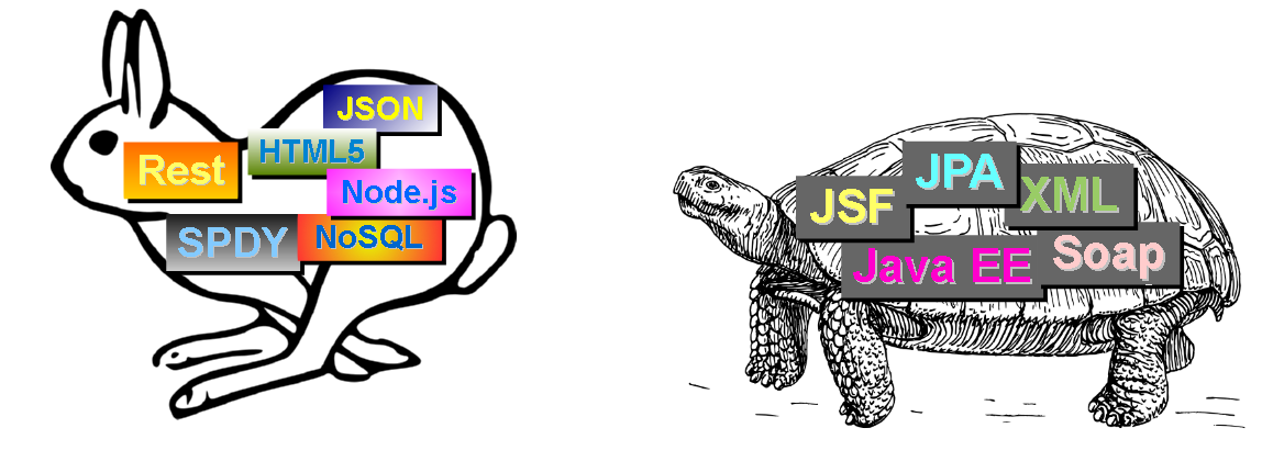 É o que acontece com os desenvolvedores corporativos Java. Outro dia, estava discutindo um novo projeto, com um colega de trabalho, e tudo o que ouvi foram marcas e nomes de frameworks. Eu ainda tentei (não sei por que insisto) argumentar, dizendo que outras soluções seriam possíveis, e que ele não deveria se "apegar" a um conjunto de soluções muito cedo, mas foi em vão.