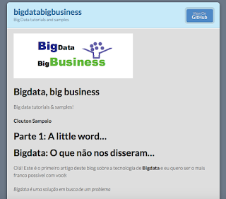 Já pensou em aprender Bigdata? De graça? Com tutoriais e exemplos sinistros? Bem, seu desejo se realizou! Confira meu blog "bigdatabigbusiness.info"